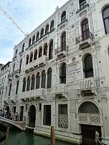 The façade of Trevisan Cappello is an example of Venetian Rinascimento: it has 37 windows, including three six-light windows. The ground floor has three pointed on to the canal. There are a lot of elegant marble decorations.[1]