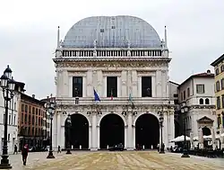 The first stone was laid in 1492. The works were directed by Filippo Grassi,[3] a stonecutter who had already been active in the city for over a decade, and whose professional culmination was this project. The French invasions starting in 1509 and the sack of Brescia in 1512 interrupted construction.[1] The work resumed in 1535 and the palace was completed in 1574 after numerous interventions by the most famous architects of the time, including Jacopo Sansovino, Andrea Palladio, and Lodovico Beretta who completed the building.[4]