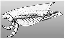 | Canadaspis | Arthropoda | Order | A hymenocarine that is thought to have been benthic feeders that moved mainly by walking and possibly used its biramous appendages to stir mud in search of food. They have been placed within the Hymenocarina, which includes other bivalved Cambrian arthropods. | ![]() | ||