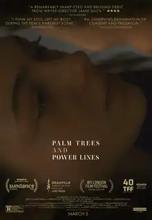 Palm Trees and Power Lines is a 2022 American coming-of-age drama film directed by Jamie Dack in her feature directorial debut, based on her 2018 short film of the same name. The screenplay by Dack and Audrey Findlay is from a story by Dack. The film stars Lily McInerny as a disconnected teenage girl falling into a relationship with a man (Jonathan Tucker) twice her age.