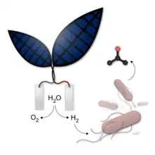 - ↑ Torella JP, Gagliardi CJ, Chen JS, Bediako DK, Colon B, Way JC, SIlver PA, Nocera DG (February 24, 2015). "Efficient solar-to-fuels production from a hybrid microbial-water-splitting catalyst system". Proceedings of the National Academy of Sciences. 112 (8): 2337–2342. Bibcode:2015PNAS..112.2337T. doi:10.1073/pnas.1424872112. PMC 4345567. PMID 25675518.