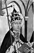 Tomb located in portico.[6] First pope buried on the porch of Old Saint Peter's Basilica; translated multiple times, combined with Leos II, III, and IV circa 855; removed in the seventeenth century and placed under his own altar, below Algardi's relief, Fuga d'Attila (pictured) in the Chapel of the Madonna of Partorienti.[1] |