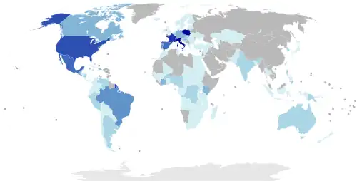 Pope Paul VI (1963–1978) became the first pope to leave Europe; no pope ever left Europe before the Second Vatican Council.[15][16] He was the first to travel by airplane as pope, the first to leave Italy since 1809, and the first to visit North America, South America, Africa, Oceania, and Asia as pope.[17][18]