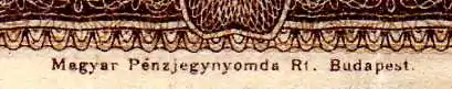 • Small size bills (100 to 1,000,000 K, printed in 1923 and 1923): ORELL FÜSSLI ZÜRICH or Magyar Pénzjegynyomda Rt. Budapest. or no mark (printed by the Magyar Pénzjegynyomda Rt. in Budapest)