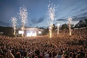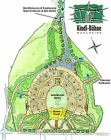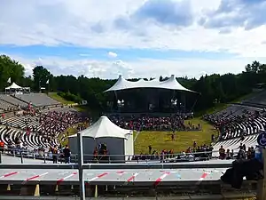 The Parkbühne Wuhlheide ("Wuhlheide Park Stage") is a cultural heritage site in Berlin, Germany, that serves as an open-air performance venue in the shape of an amphitheater. It is part of Volkspark Wuhlheide ("Wuhlheide Public Park") in the Berlin-Oberschöneweide neighborhood in the district of Bezirk Treptow-Köpenick. The Kindl-Bühne has a non-seated spectator capacity of 17,000 and a seated capacity of 15,300. It is the second-largest open-air stage in Berlin, trailing only the Waldbühne in size.