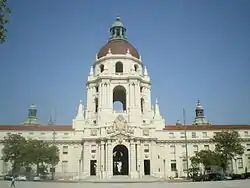 The Beaux-Arts Mediterranean Revival City Hall building was designed by San Francisco architects Bakewell and Brown in the style of 16th-century Italian architect Andrea Palladio. The building resembles three of Palladio's domed structures—the church of Santa Maria della Salute in Venice, the Hotel des Invalides in Paris and St Paul's Cathedral in London. Without being a direct imitation, Pasadena City Hall is related to them all.[2]
