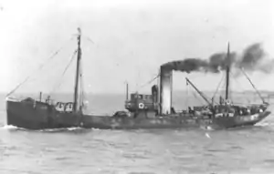 In February 1917, the British Admiralty ordered the construction of 36 naval trawlers from Canadian shipyards as part of a building programme intended to improve the state of seaward defence in Canadian waters.[5] Named TR 14, the vessel was ordered from Thor Iron Works of Toronto, Ontario and was launched on 10 June 1918.[4] The trawler was then sent up the Saint Lawrence River to Quebec City to be completed and commissioned.[6] The trawler was intended for minesweeping duties, but was also used as a patrol and coastal convoy escort vessel along the shipping lanes on the East Coast of Canada.[7]