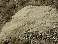 The Paskapoo rests on the Scollard Formation in the Alberta plains, and on the equivalent Coalspur Formation in the Alberta foothills.[11] The lower boundary has been defined as the erosional base of the first prominent sandstone above the Ardley coal zone of the Scollard Formation.[12] It has been established that, in the type area near Red Deer, this erosional surface represents a hiatus of about 1-2 million years.[6] In the foothills, the contact with the underlying Coalspur Formation is less distinctive but is again placed at the base of the first dominantly sandstone unit overlying a dominantly coal and mudstone unit.[10]