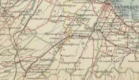 After Surabaya−Bangil−Pasuruan had been connected by Staatsspoorwegen railway line in May, 16th 1878. There was a private investor who interested to built rail line which connecting the rural part of Pasuruan to the port area. The Pasoeroean Stoomtram Maatschappij (PsSM) was founded officially in 1895 based on Notarial Deed of H. W. F. Ligtenberg at 's Gravenhage (The Hague) on March, 14th also Koninklijk Besluit No.19 on March 5, 1895, operating as a tram company, proposed to the Government of the Dutch East Indies the construction of a rail network to solved the transport problems of the sugar mills and crops in the Pasuruan area, which hindered the export of agricultural products. The sugar mills (suikerfabrieken) which faced the problems were Sf. Kedawoeng, Sf. Bekassi Oost (Winongan), Sf. Gajam (Gayam), Sf. de Goede Hoop (Pengkol), Sf. Pleret (now ex textile factory Nebritex/Inbritex), Sf. Wonoredjo (Wonorejo) and Sf. Alkmaar (Purwosari).[1] [2] [3]