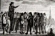 In the vicinity of Gouda he was hunted by the bailiff and heretic hunter Anthony Cloots and in the vicinity of Leiden he was hunted by the bailiff Willem de Bont.[4] In a raid by Cloots during an illegal church service of De Fijne, Cloots was so attacked by the churchgoers that he had little chance of success.[5][1][2]