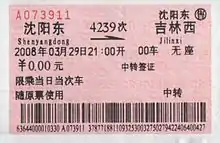 The majority of train tickets in China are thermally printed paper tickets displaying the train's origin and destination, service number, price, date and travel time, accommodation type, class and seat number, as well as a barcode for security checks. Some tickets on the CRH routes such as Nanjing–Shanghai–Hangzhou or Guangzhou–Shenzhen use machine-readable tickets i.e. tickets on the Nanjing–Shanghai route have a magnetically encoded stripe for future use of automatic ticket inspection gates being implemented at major stations along the route, whilst tickets on the Guangzhou–Shenzhen line have embedded RFID microchips which can be read by proximity readers mounted above the ticket gates.