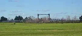 Hinton bridge is an Allan-type timber truss road bridge. It has two external timber truss spans, each of 28 metres (92 ft) and one internal steel truss lift span of 17.8 metres (58 ft). There are seven timber approach spans at one end and three at the other giving the bridge an overall length of 178.6 metres (586 ft).[1]