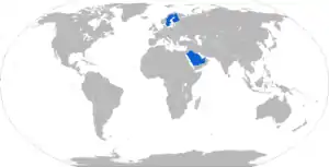 The first customer of the weapon system was the Slovenian Army,[2] which ordered 12, while the United Arab Emirates Naval Forces bought 12 patrol boats, where some were to be equipped with NEMO mortars.[3] Saudi Arabia bought 36 turrets to equip its LAV II vehicles.[4] Recently, Patria is offering the NEMO system fitted into standardised 20-ft-containers to increase flexibility: the mortar container can be lifted with and fired from a truck or a boat or can be set on the ground, e.g. as base defense.[5][6][7] Training simulators are also available.[8]