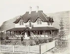 In 1901 he married Eileen Ellis of Penticton in a small ceremony in London, England. Back in Calgary, Burns was building a house for him and his new bride. Burns Manor, on the corner of 4th Street and 13th Avenue SW, designed by Pat's friend, the famed architect Francis Rattenbury, was a grand, 18-room sandstone mansion, visited by the likes of Prime Ministers and Royalty.[14] Construction took two years, and the couple meanwhile lived at the Alberta Hotel, on Stephen Avenue. The Burnses had one son, Patrick Michael Burns, born in Calgary in 1906.