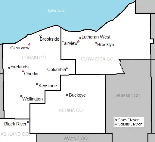 In 2017, the eight primarily Lorain County schools (Brookside, Clearview, Columbia, Firelands, Keystone, Oberlin, and Wellington, as well as Black River) announced they would leave the PAC in 2020 to form their own league.[4][5]