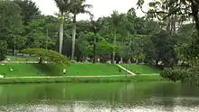 Besides these rivers, several streams and creeks are present in Paulínia, especially the Quilombo creek, on the border with Sumaré, and the Anhumas creek, on the border with Campinas and Jaguariúna. Among the streams are Jacaré and Jacarezinho, which are tributaries of Jaguari, Areião, Veadinho, and São Bento, tributaries of the Atibaia River, and the streams Betel, Fazenda do Deserto and Velosa (the latter on the border with Sumaré), tributaries of Quilombo Creek. The municipality also has several lakes and lagoons, the main ones being Santa Terezinha, Armando Ferreira, Jardim Botânico, José Maria Malavazzi and César Bierrembach.[45]