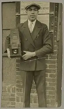 After leaving Indiana, Henderson worked for a newspaper in Roanoke, Virginia.[3] Henderson moved to Baltimore in 1929 and became what the Baltimore Afro-American newspaper called their first photographer.[1] Henderson used a large format view camera to produce glass negatives, and eight by ten inch and four by five inch acetate negatives.