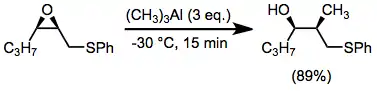 The thia-Payne rearrangement has only been observed in the forward direction (epoxide to thiiranium) with in situ opening of the thiiranium. Invertive nucleophilic opening at C-2 is possible through the use of trialkylaluminum reagents.[15]