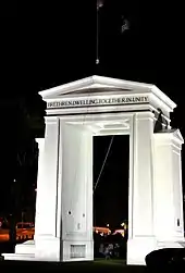 Peace dove statue in Lomé, Togo, Africa. The dove and the olive branch are the most common symbols associated with peace.[1]