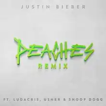 - ↑ "Peaches (Remix) [feat. Ludacris, Usher & Snoop Dogg] – Single by Justin Bieber". Apple Music (US). Retrieved June 7, 2021.