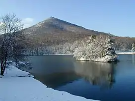 The primary activity at Peaks of Otter is hiking. There are three main peaks: Flat Top, Sharp Top, and Harkening Hill in order from highest peak altitude to lowest peak altitude. Flat Top is the tallest, and Harkening Hill is the smallest. Sharp Top is the most famous hike with its spectacular 360° view at the top. There is also a separate cliff formation on the other side of Sharp Top called Buzzard's Roost, which also has good views. For those who cannot hike 1.5 mile and 1,300 ft elevation gain trail up to the top of Sharp Top, there is a shuttle service that people up to within a 15-minute walk from the top. Combined within the three peaks is a little over 12 miles of hiking and extra attractions along the way.[5] There is a flat, one-mile paved trail around Abbott Lake along with a 1.6-mile-loop trail to a waterfall roughly 2 miles north on the Blue Ridge Parkway. Johnson Farm is a historically restored site along one of the side trails towards Harkening Hill. The house and outbuildings are preserved in their 1930s form along with gardens and a small orchard. Visitors can take free tours of the farmhouse from June–September. From June–October the National Park Service provides various Ranger programs. There is also a small visitor center run by the National Park Service.