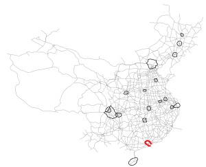 Currently, only sections between Zhuhai and Sanshui District and from Zengcheng to Shenzhen are complete, entirely in the province of Guangdong.