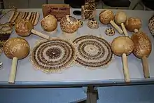 The Pech people have always made a living by fishing and shifting agriculture.[10] This is due to the lack of plant-supplied protein and nutrients in the diets of root croppers.[11] The Pech people acquired the balance of their diet from the practice of hunting and fishing. In order to hunt, the Pech people utilise the 'cerbatana' (a type of blowgun), bow and arrow, and traps.[5] These techniques are still used today in Pech communities.[5] Formerly the Pech hunted quadrupeds such as deer, which are rare today.[5] The Pech hunt an array of birds such as paca, pheasant, armadillo, cashew bird and agouti.[5] When fishing, the Pech people utilise a harpoon and use ground soap plants to poison the water.[5] For the Pech, fishing also consists of gathering crustaceans and mollusks, including shrimp, crabs and jute, a freshwater snail.[5] The main characteristics of Pech agriculture is the clearing of trees. A 'slash and burn' method, where stone axe and fire are used to clear a field of trees and undergrowth of roots, is implemented to dig sticks to plant.[12] Today the main economic activities conducted by the Pech people include tree clearing, gold panning, breeding domestic animals and extracting fragrant resin from liquidambar for perfumes, incense and adhesives.[2] The Pech people also earn profit from selling handcrafted items, including woven baskets, bags, placements and corn-grinding stones.[2]