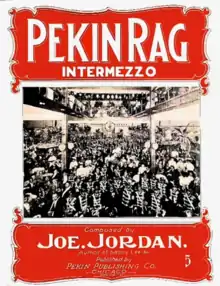 Following a 1901 trip to France and the Parisian music hall, "Cafe Chantants", Robert T. Motts, a Chicago saloon keeper and gambling king was inspired to "make a contribution to his race by providing entertainment along more cultural and uplifting lines".[4][5] In 1904, he converted his Pekin saloon and restaurant, located at the corner of 27th and State Street, into the Pekin Theatre “Temple of Music”.[6] Following a fire in 1906, Motts renovated the entire building, increasing the capacity from 400 to 1200, including box and lodge seating.[7] With its own “stock company of colored artists, original musical comedies, farces, and plays written and composed by colored men", the ‘New Pekin Theatre’ re-opened on March 31, 1906, with the first production of the musical The Man from 'Bam.[8][7][9]