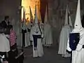 The Miserere, a work of father Alcocer, was introduced in 1952.[3] The singing is the highlight of the procession and one of the most representative of the Holy Week in Zamora; it takes place in the Plaza de Viriato (Viriato Square),[2] close to the parade.