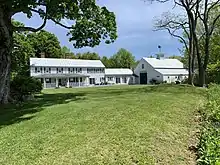 - Benjamin D. Pennell House (1804–1861), son of Jacob Pennell. 287 Pennellville Road.[8] Built 1834. Greek Revival style residence, two stories with clapboard siding and gable roof. Recessed porch with classical columns on east wing. One story service wing extends from east side with one-and-one-half story barn built in 1876. Adjacent to the house is a carpenter shop, built circa 1850. It is a one and a half story structure with gable roof and clapboard siding. Across the east facade is a veranda with Italianate style brackets. Around 1900 it became a popular summer boarding house, Bay View Farm. From 2000 through 2022 it was Middle Bay Farm Bed & Breakfast.