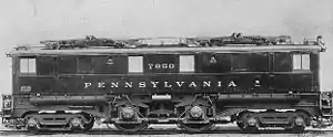 The Pennsylvania Railroad's class O1 comprised eight experimental boxcab electric locomotives[4] built in 1930 and 1931.[1] They were built in preparation for the New York to Washington Electrification project.[5] They had the wheel arrangement classified as 4-4-4 in the Whyte notation (UIC: 2'B2'; AAR: 2-B-2). Although successful, they were not powerful enough for the railroad's increasingly heavy trains. For production, the PRR chose to concentrate on the P5 class, effectively an enlarged and more powerful version of the O1 with an additional pair of driving wheels.