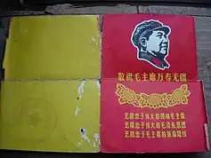 After the promulgation of the "Marriage Registration Measures" in 1955, marriage certificates have always been printed by the county and city governments, so there is no uniform standard for the form and specification of marriage certificates, and most of them are in the form of certificates of merit. Marriage certificates in the 1950s ranged from larger ones to as small as two palms. From the 1950s to the 1970s, the decorative patterns on marriage certificates included traditional auspicious patterns such as mandarin ducks playing in the water and plum blossoms, as well as new patterns such as rice ears, cotton, and doves of peace. Slogans are often printed on marriage certificates, such as "voluntary" in the 1950s, "diligence and thrift, family planning" in the 1970s and 1980s, and so on. During the Cultural Revolution, some marriage certificates were also printed with Chairman Mao's portrait, Chairman Mao's quotations and so on. After the reform and opening up, with the gradual improvement of China's legal system, the legal document nature of the marriage certificate has gradually strengthened, and the form of the marriage certificate has gradually transitioned from the certificate type to the passport type.[7][8]
