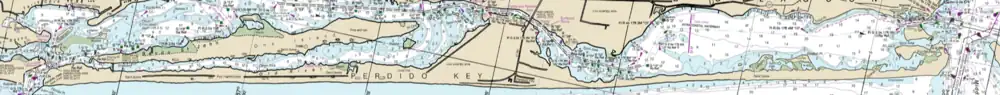 Nautical chart of Perdido Key, from Perdido Pass, Alabama (left) to Pensacola Pass, Florida, (right)