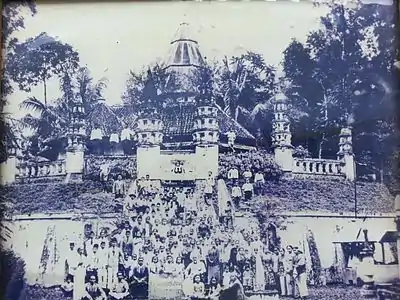 The history of the Ahmadiyya Muslim Community in Indonesia begins in 1925, during the era of Dutch colonization of the Indonesian archipelago, approximately two decades prior to the Indonesian Revolution. However, contact with the Indonesian people and Ahmadi Muslims of India dates back a few years earlier. In 1922, in order to further their religious studies, three Indonesian students, Abubakar Ayyub, Ahmad Nuruddin and Zaini Dahlan, from Sumatra Tawalib, a boarding school in Sumatra, initially planned to travel to Islamic institutions in Egypt, which during that period were known for their reputation in the Muslim world. However, their teachers advised them to travel to India, which according to them was increasingly becoming a center of Islamic thought. It has been suggested that a number of Ahmadi Muslim journals and books published in India were widely circulated in South East Asian countries of Singapore, Malaysia and Indonesia, in the 1920s.[5] Moreover, in October 1920, Khwaja Kamal-ud-Din, the leader of the splinter group Lahore Ahmadiyya Movement toured Southeast Asia where he successfully managed to win confidence among some Indonesian Muslims. He delivered a number of speeches in Surabaya and Batavia which attracted headlines in several leading newspapers. It has been postulated that this may have been the trigger for the teachers to recommend a trip to India.[6]