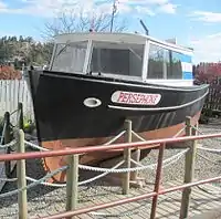 After the end of the series in 1990, the engine was removed, and Harry Smith donated the vessel to the Town of Gibsons in 1991. The tug was kept for several years at the town public works yard. In 2003 the Sunshine Coast Museum & Archives Society in Gibsons took ownership of the tug for restoration. John Henry was removed from the vessel registry on June 13, 2003, as a team of volunteers restored the tug to its appearance in the television series as Persephone.[4] The tug was transferred back to the Town of Gibsons in 2007 after restoration was complete. It was agreed that the vessel would not be used in the water again but would be prominently displayed in the town.[5] A location was chosen at an intersection of Gower Point Road, just down the road from the Sunshine Coast Museum & Archives which continues to maintain a display about the show's production, and just up the road from Molly's Reach, the cafe building which featured prominently in the series.[6] Persephone was installed by crane on a special landscaped cradle in July 2007 during the town's annual Sea Cavalcade celebrations. In 2020 the vacant lot was slated for redevelopment, and a new home needed to be found.[7] In December 2020 B.C. Ferries committed funding for restoration and a new building.[8]