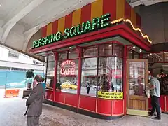 - ↑ Varner, Bill (August 15, 1999). "Cafe to call attention to Pershing Square". The Journal-News. p. 3. Archived from the original on May 6, 2022. Retrieved June 4, 2020 – via newspapers.com