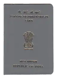 1. ^ People of Indian Origin (PIO) refers to people of Indian birth or ancestry who are not citizens of India, but are citizens of other nations. Those PIOs who have availed of the Overseas Citizenship of India status through OCI card are known as Overseas Citizen of India (OCI). The card issued to PIOs earlier known as PIO card has been merged into OCI card since 2014.