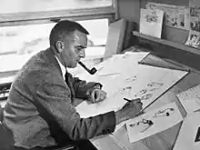 Peter Wells working for the Famous Artist School, c. 1950's