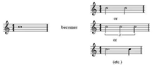 2. inserting, in the second segment, a note whose pitch is an adjacent member of the appropriate diatonic collection (while leaving a note of the original pitch to occupy the first segment).