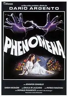 Phenomena is a 1985 Italian giallo-horror film directed and co-written by Dario Argento, and starring Jennifer Connelly, Daria Nicolodi, Dalila Di Lazzaro, Patrick Bauchau and Donald Pleasence. The plot concerns an American girl at a remote Swiss boarding school who discovers she has psychic powers that allow her to communicate with insects, and uses them to pursue a serial killer who is butchering young women at and around the school.