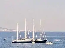 Phocea was a sailing yacht that was built at Toulon, France, by DCAN in 1976.[1] She is 246 feet long (75 meters) and can cruise at 12 knots.[1] Like many yachts, she has undergone a number of refits, a major one having been in 2000 in Germany.[2] She can handle 12 guests supported by a crew of 16 sailors.[2] Phocea is a schooner with four masts.[3] Phocea was originally built for speed, and she crossed the Atlantic in 8 days and achieved speeds of 30 knots under sail.[3] The yacht has also been converted more for luxury and used on the charter market.[3]