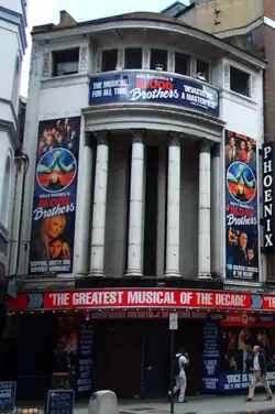The Phoenix Theatre is a West End theatre in the London Borough of Camden, located in Charing Cross Road (on the corner of Flitcroft Street). The entrances are on Phoenix Street and Charing Cross Road. The Phoenix Theatre was built on the site of a former factory and then music hall Alcazar before.[1]