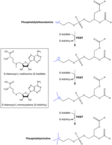 - 1 2 3 4 Vance DE (Jun 2014). "Phospholipid methylation in mammals: from biochemistry to physiological function". Biochimica et Biophysica Acta (BBA) - Biomembranes. 1838 (6): 1477–87. doi:10.1016/j.bbamem.2013.10.018. PMID 24184426.