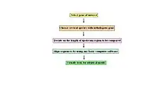It is important when using this technique to decide which genome your sequence should be aligned to. More divergent species will have less sequence similarity between orthologous genes. Therefore, the key is to pick species that are related enough to detect homology, but divergent enough to maximize non-alignment "noise". Step wise approach to Phylogenetic footprinting consists of :