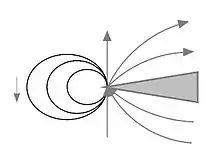 An annular duct carries the fluid that creates the annular jet. The jet impinges on a sharp ended ring with two toroidal cavities on either side. In Levavasseur's patent,[41] a structure is added downstream of the annular opening to act as a coupling horn to direct the sound. The sound generated is very intense. It appears that no scientific study has been done to elucidate the detailed feedback mechanisms of its operation, although it is clear that this whistle has class I feedback mechanism, similar to the police whistle.