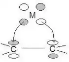 Ethylene – π In the most simple linear π systems, bonding to metals takes place by two interactions. Electron density is donated directly to the metal like a sigma bond would be formed. Also, the metal can donate electron density back to the linear π system (ethylene) from the metal’s d orbital to the empty π* orbital of ethylene.[9]
