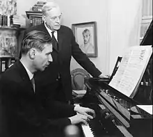 The Western radio premiere of the sonata was played by Vera Brodsky and broadcast on CBS on September 29, 1943. It was preceded by a private performance that afternoon for invited critics and musicians.[18] That broadcast was followed by the Western concert premiere at Carnegie Hall on October 24 played by Brodsky. Her performance was part of a concert of Soviet music held under the auspices of the American Russian Institute, which sought to improve cultural relations between the United States and Soviet Union. It also included the Western premieres of three songs from the Six Romances on Verses by British Poets, sung by Alexander Kipnis. Donald Ogden Stewart was the master of ceremonies for the concert, whose audience included Andrey Gromyko.[19]