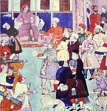 Akbar with European visitors.