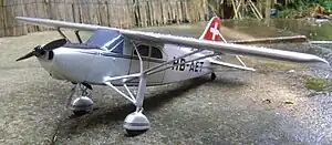 The prototype P-4, aircraft registration HB-AET took off for its maiden flight on 22 March 1948.[4] Although the aircraft was exhibited at the 1949 Paris Air Show, it did not enter production owing to a lack of production capacity, Pilatus being busy refurbishing the Swiss Air Force's P-51 Mustang fighters and later, license-building de Havilland Venom jet fighters.[2]