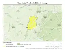 Pine Creek is a 13.8-mile (22.1 km)[5] long tributary to Oil Creek in Crawford County, Pennsylvania. Most of Pine Creek and its tributaries are classed as Exceptional Value (EV) or High-quality-Cold Water Fishery (HQ-CWF). Only the lowest part of Pine Creek near Oil Creek is classed as a cold-water fishery.[6]